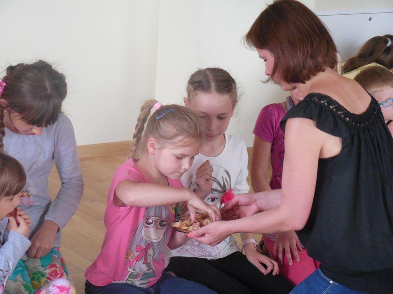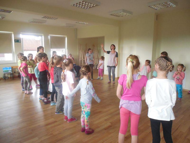 We wtorek 1 lipca odbyły się zajęcia plastyczne dla dzieci do lat 13 pod kierownictwem Pani Eweliny Kosek. Dzieci były w różnym wieku poczynając od przedszkolaków do dzieci z klas VI szkoły podstawowej. Część dzieci samodzielnie uczyła się odwzorowywać rysunki natomiast młodszym dzieciom pomagali opiekunowie. O godzinie 14 rozpoczęły się zajęcia „Czasoumilacze”, podczas których dzieci pod opieką Pani Moniki Mastalerz najpierw przygotowywały a później piekły ciasteczka. Następnie o godzinie 15 odbyły się zajęcia z tańca integracyjnego dla dzieci do lat 10, na których najmłodsi uczyli się poprzez zabawę podstaw tańca klasycznego i nowoczesnego. Wszystkie powyższe zajęcia mają charakter bezpłatny, dlatego wiele dzieci może z nich skorzystać (liczba dzieci na każdych z tych zajęć średnio wynosiła 40. dzieci). O godzinie 16 odbyły się również odpłatne zajęcia z rytmiki dla dzieci do 5 lat prowadzone podobnie jak taniec integracyjny przez Panią Marię Sęk. Celem zajęć jest rozwijanie koordynacji ruchowo - motorycznej, pamięci a także wrażliwości muzycznej i wyobraźni poprzez zabawę przy muzyce.