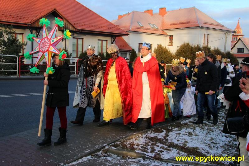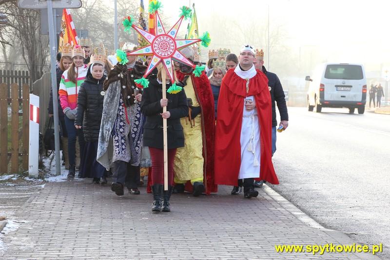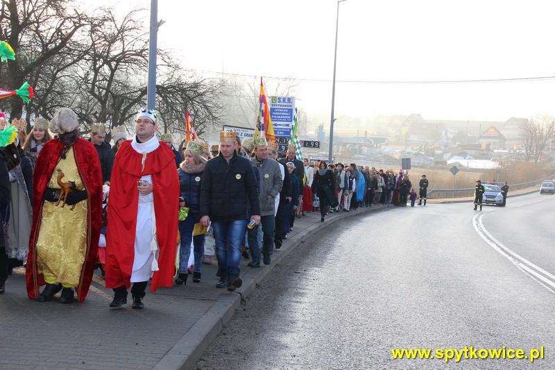 Wszyscy uczestnicy orszaku otrzymali korony oraz śpiewniki. Barwny pochód przeszedł ulicą główną na parking przykościelny, gdzie ustawiona została żywa szopka. To tam Trzej Królowie złożyli pokłon Narodzonemu i ofiarowali dary. Kolędujących prowadziła gwiazda rozświetlając drogę prowadzącą do Pana. Przemarsz uświetniły muzyka i śpiew zespołów regionalnych „Siekiernica” i „Krzesani” oraz występ orkiestry dętej OSP Spytkowice.