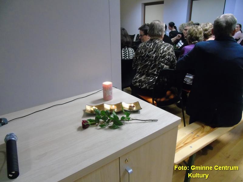 W tym wyjątkowym dniu dla przybyłych gości pięknie zaśpiewała Maria Dziur, której cudowny głos podziałał jak balsam na dusze i wprowadził w odpowiedni nastrój. Niespodziewanymi gośćmi, którzy zaskoczyli wszystkich swoją obecnością byli wójt Pan Ryszard Papanek wraz z przewodniczącym Rady Gminy Panem Józefem Kościelniakiem. Mając naręcza kwiatów, miłym gestem wręczania róż witali przybyłe na spotkanie kobiety. Na spotkaniu nie zabrakło przedstawicieli płci męskiej. W celebrowaniu święta kobiet uczestniczyli również Przewodniczący Komisji Kultury Pan Andrzej Trzop oraz Pan Henryk Sawiński towarzysząc swoim wybrankom.