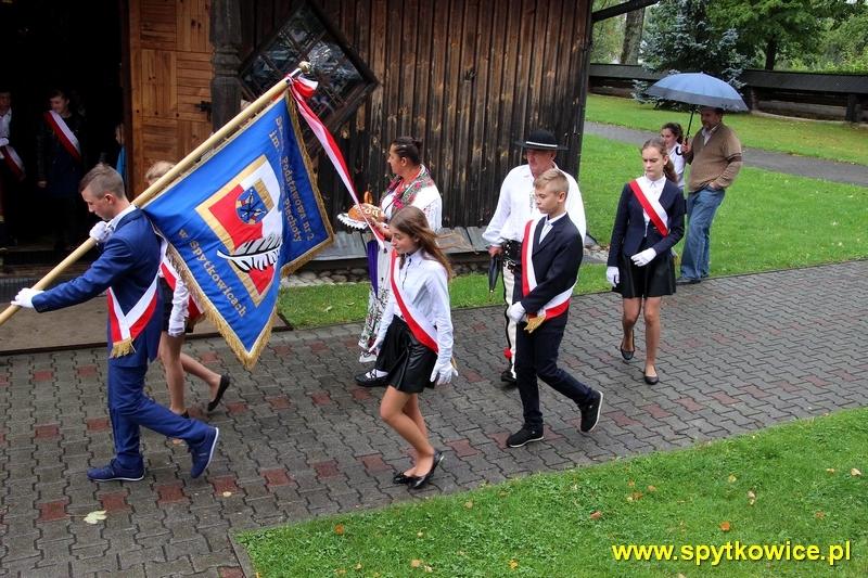 Po nabożeństwie z kościoła w kierunku hali sportowej wyruszył korowód dożynkowy, nad którego bezpieczeństwem czuwali strażacy OSP ze Spytkowic. W korowodzie przemaszerowali orkiestra ze Spytkowic, starostowie, Gospodynie ze Spytkowic wraz z pięknie przygotowanym wieńcem dożynkowym, zespół regionalny Krzesani pod przewodnictwem Pani Beaty Rzeszótko, władze oraz rada gminy Spytkowice wraz z pocztem sztandarowym, Straż Pożarna OSP wraz ze sztandarem, przedstawiciele Związku Podhalan oddział Spytkowice wraz ze sztandarem, reprezentanci Koła Łowieckiego wraz ze sztandarem, uczniowie wszystkich szkół ze Spytkowic wraz z pocztami sztandarowymi, zaproszeni goście tj. delegacja z Gminy Szemud wraz z przedstawicielami władz i pocztami sztandarowymi oraz zespołem, delegacja z Węgier wraz z zespołem tanecznym, delegacja ze Spytkowic z powiatu wadowickiego, delegacja z Orawskiego Białego Potoku ze Słowacji, starosta nowotarski Krzysztof Faber, radni powiatowi Franciszek Sidełko wraz z żoną oraz Ryszard Klamerus wraz z żoną, sołtys wsi wraz z żoną oraz licznie zgromadzeni mieszkańcy Spytkowic.