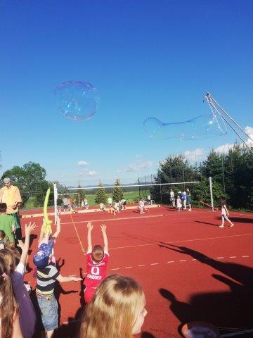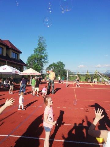 Ponadto w trakcie trwania festynu puszczano ogromne bańki mydlane, malowano buźki, skręcano balony oraz prowadzono różnorodne rozgrywki sportowe. Przy stoisku plastyczno – ekologicznym dzieciaki malowały kolorowanki, rozwiązywały rebusy i krzyżówki o tematyce ochrony środowiska oraz otrzymywały upominki promujące dbałość o czyste środowisko.