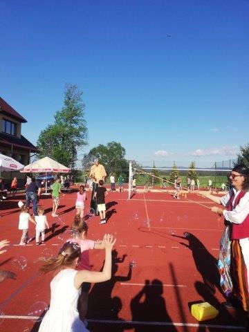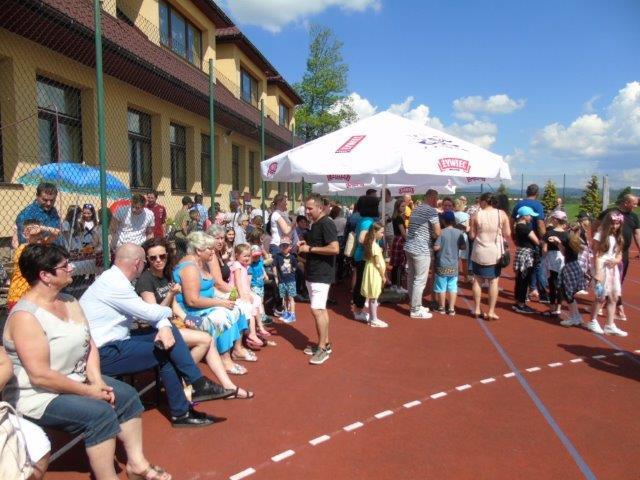Do wspólnego świętowania przyłączyło się wiele rodzin, które bardzo licznie zgromadziły się w tym dniu, by spędzić miło i aktywnie wolny czas ze swoimi pociechami. Podczas obchodów Dnia Dziecka nie zabrakło również przedstawicieli naszych władz, wójta wraz z radnymi gminy Spytkowice, sołtysa wsi oraz pani dyrektor Kingi Palarczyk. Podczas pikniku pięknie zaprezentowali się uczniowie z Szkoły Podstawowej nr 2, dzieci z grupy wokalnej oraz dzieci z grupy tanecznej działającej w GCK. Podczas festynu został podsumowany plastyczny konkurs ekologiczny oraz rozdanie nagród. Konkurs został zorganizowanych w ramach ochrony powietrza w programie Małopolska w zdrowej atmosferze. Wystawę prac pokonkursowych można było oglądnąć w jednej z sal Szkoły Podstawowej nr 2. Podczas festynu został zaprezentowany bogaty program animacyjny, który aktorzy przenieśli dzieci w magiczny świat bajek. Wspólne śpiewanie znanych przebojów Disneya, konkursy z nagrodami, taniec to tylko część atrakcji, w których dzieci aktywnie uczestniczyły.