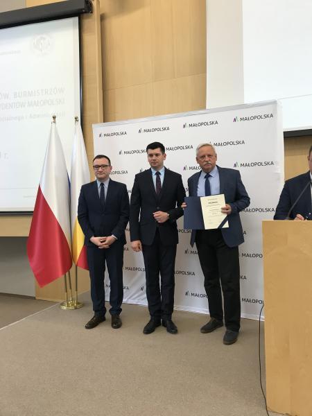 W dniu 05-09-2019 podczas Forum Wójtów, Burmistrzów i Prezydentów Małopolski nasza gmina otrzymała promesę w ramach środków budżetu Województwa Małopolskiego związanych z wyłączeniem z produkcji gruntów rolnych.