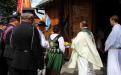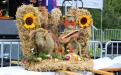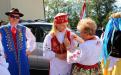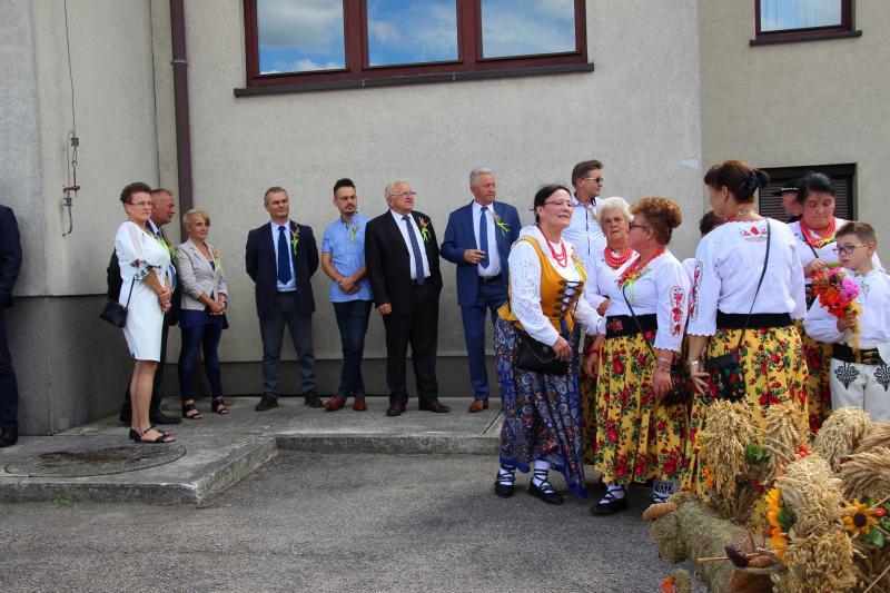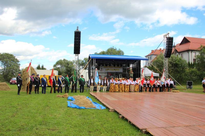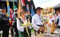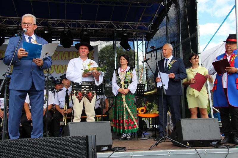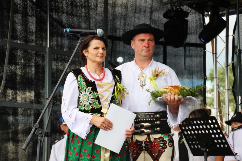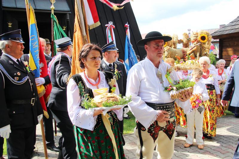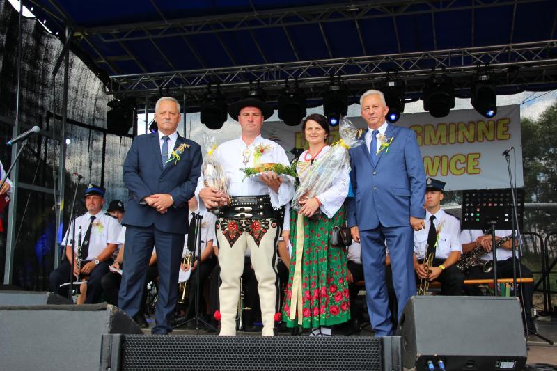 Honory starostów dożynek gminnych pełnili Lucyna i Janusz Trzop, którzy w swych dłoniach nieśli bochenek chleba i dary ołtarza.