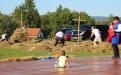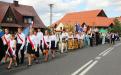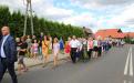 Tuż po mszy św. i poświęceniu darów ziemi w barwnym korowodzie dożynkowym wszyscy zebrani udali się na boisko sportowe. Korowód prowadziła straż pożarna, czuwająca jednocześnie nad bezpieczeństwem wszystkich biorących udział w przemarszu.