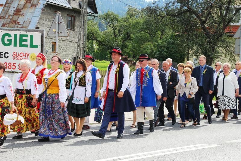 W uroczystym przemarszu dożynkowym z placu przy Urzędzie Gminy do kościoła wzięli również udział władze i przedstawiciele Gminy, poseł na Sejm Pani Anna Paluch, poseł na Sejm Edward Siarka dyrektorzy wszystkich szkół i przedszkola, sztandary: Ochotniczej Straży Pożarnej, Gminy Spytkowice, Związku Podhalan oddział Spytkowice, Koła Łowieckiego Bór, wszystkich szkół. W przemarszu wzięły udział również zaproszone delegacje z partnerskich gmin: Szemud, Spytkowic w powiecie wadowickim, przedstawiciele partnerskiej gminy Érsekvadkert z Węgier, zaproszone grupy z Litwy, Gospodynie ze Spytkowic, Radni Rady Gminy, Sołtys oraz Radni Rady Sołeckiej, zaproszeni goście oraz mieszkańcy. Oprawę muzyczną podczas przemarszu w korowodzie, jak również w czasie mszy świętej poprowadziła orkiestra Ochotniczej Straży Pożarnej oraz zespół góralski z Ludowego zespołu „Siekiernica”.