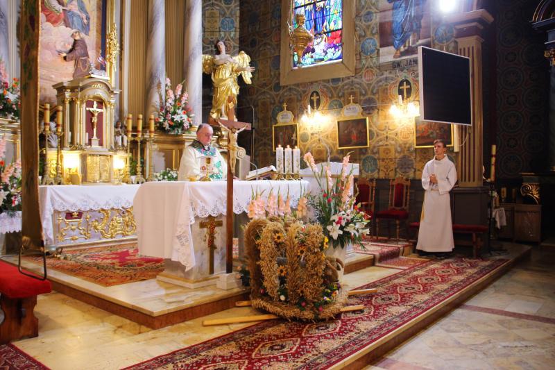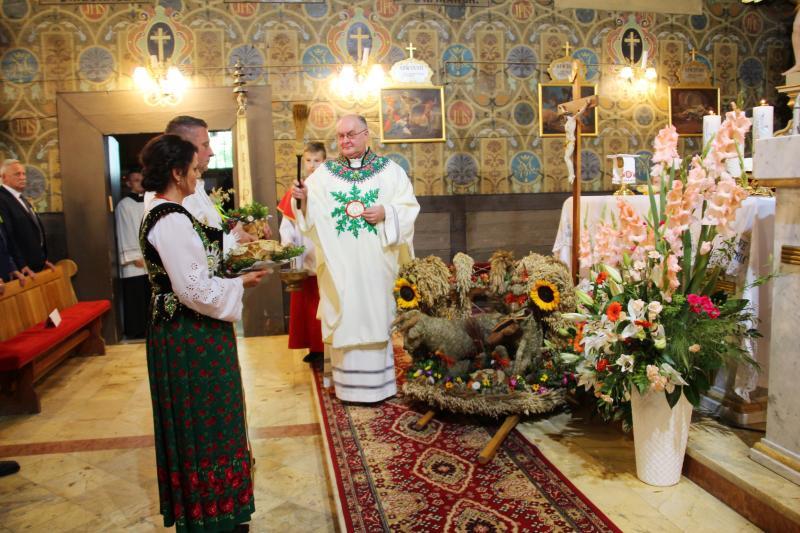 Dziękczynna msza święta odprawiona o godz. 15.00 przez proboszcza ks. Stanisława Wąsika w kościele parafialnym rozpoczęła Dożynki Gminne w Spytkowicach.