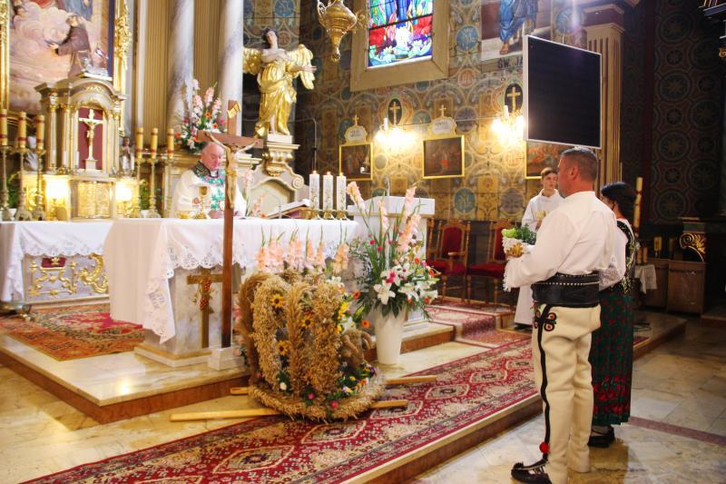 Wyrazem wdzięczności i dziękczynienia za udane żniwa i błogosławioną pracę w polu Gospodynie ze Spytkowic zaniosły przed ołtarz Pana piękny wieniec dożynkowy upleciony z tegorocznych zbóż i kwiatów oraz owoców ziemi.
