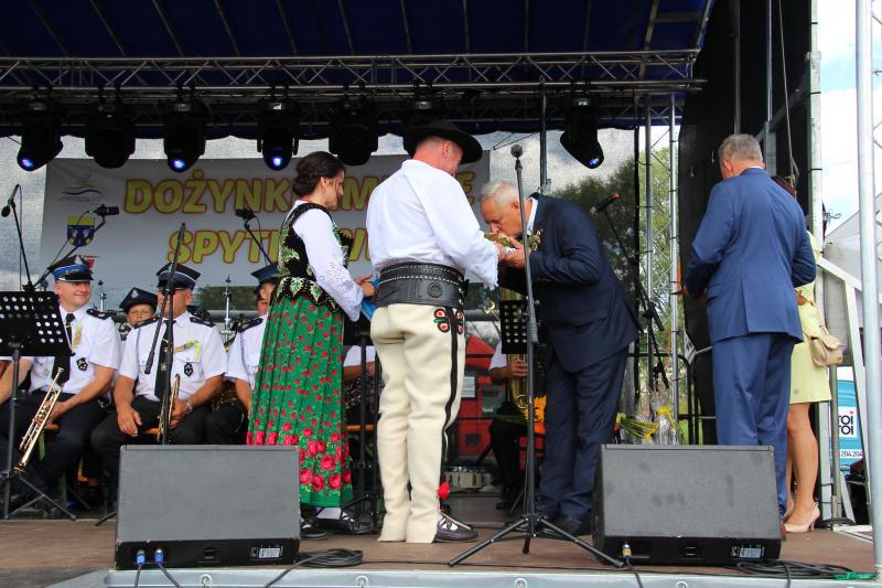 Koncert orkiestry rozpoczął część oficjalną dożynek. Następnie odbył się obrzęd przekazania darów i wieńca dożynkowego na ręce Wójta Gminy Spytkowice Pana Ryszarda Papanek oraz Przewodniczącego Rady Gminy Pana Józefa Koscielniaka. W przemówieniu Wójt Gminy Pan Ryszard Papanek zwracał się do mieszkańców Spytkowice, a w szczególności do pracujących na roli dziękując za wkład i ciężką pracę.