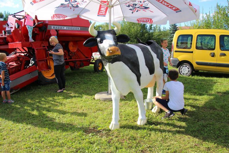 Podczas festynu nie zabrakło oczywiście atrakcji w formie darmowych zjeżdżali oraz pojawiła się również sztuczna krowa do dojenia.