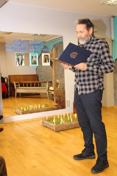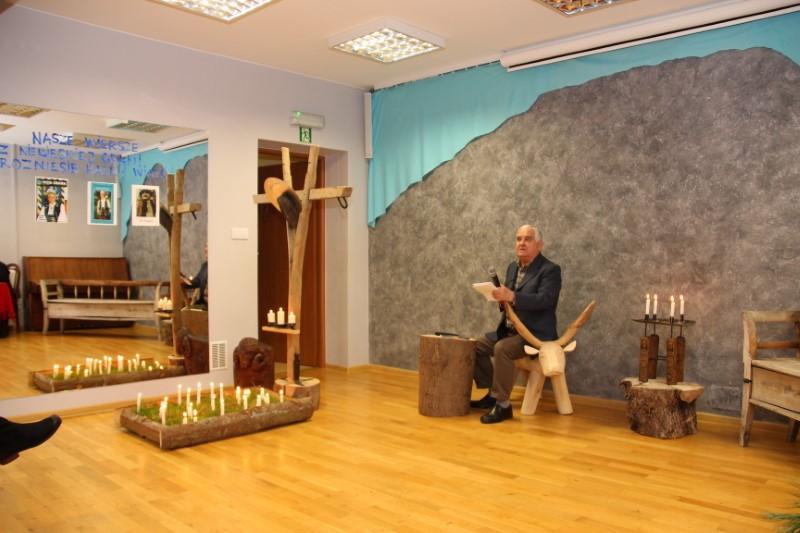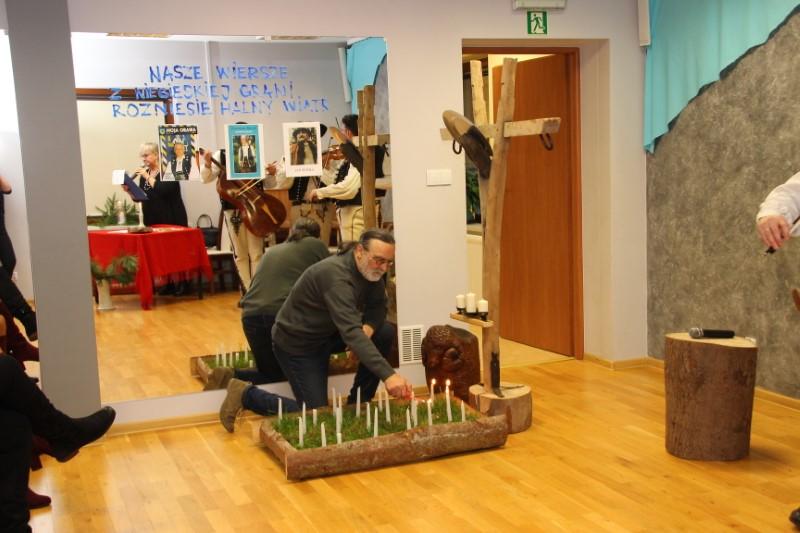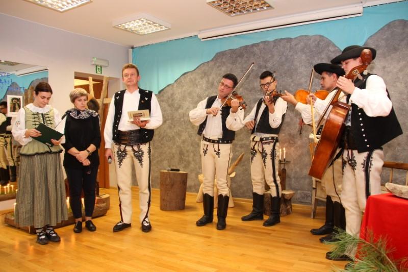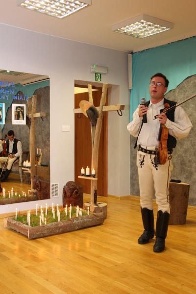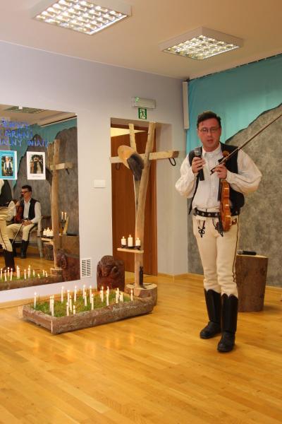 Cały czas przygrywała kapela Marcina Kowalczyka, prezentując wspaniały poziom muzyczny. Muzykanci siedzieli na zabytkowej ławie na tle Giewontu, który wyczarował Ryszard Klamerus sprytnym artystycznym zabiegiem, poruszając u widzów czułą strunę.. Były świece, była stylizacja grobu ze świeżą trawą, w której paliły się świeczki, były rzeźby zwierząt, wykonane przez artystę Ryszarda Klamerusa, tj. baranek i mały byczek ,w postaci ławeczki. Piękny był regionalny, drewniany nagrobek z pomysłowym krzyżem. Na lustrze, znajdującym się w sali, znalazły się fotografie nieżyjących poetów i napis stanowiący motto imprezy : NASZE WIERSZE Z NIEBIESKIEJ GRANI ROZNIESIE HALNY WIATR..