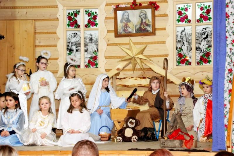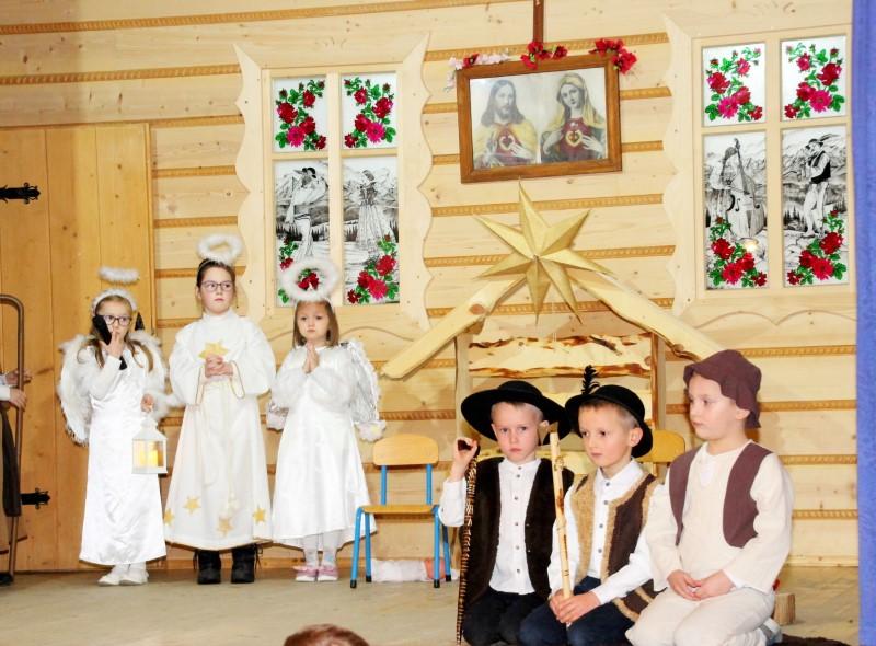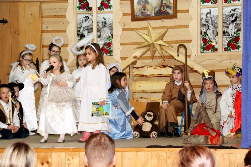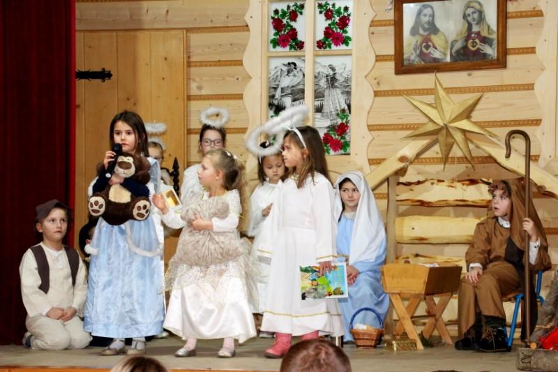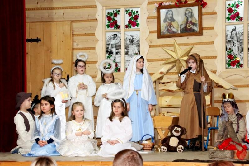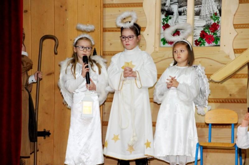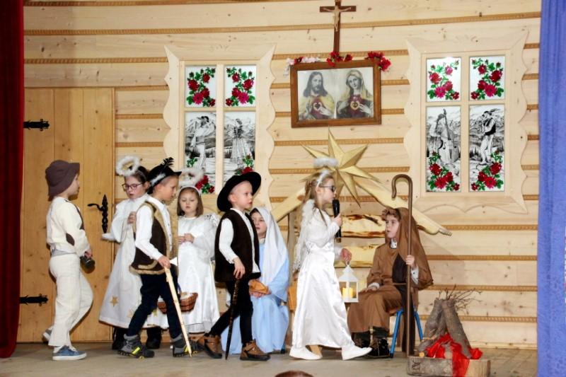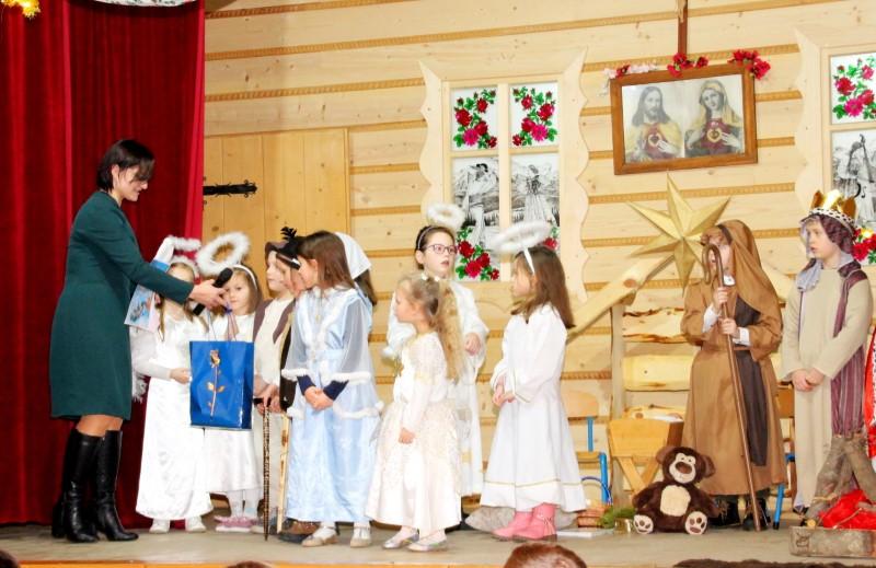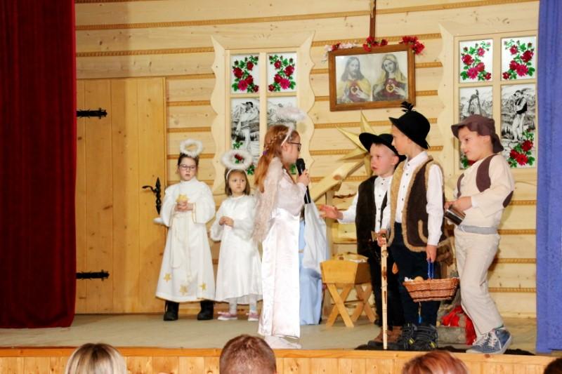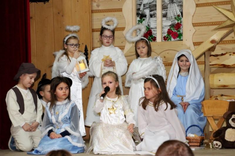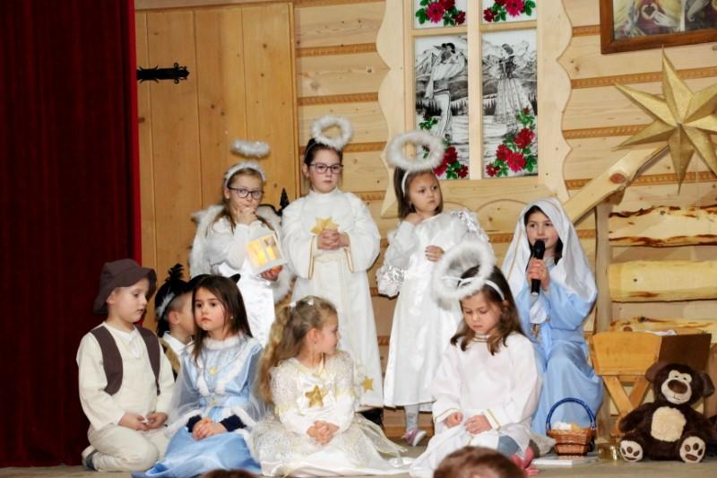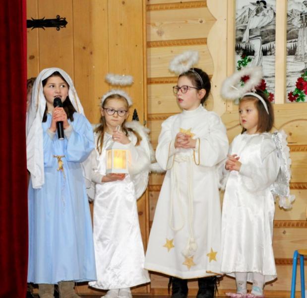 Podczas występu dzieci pokazały dwie formy Jasełek oraz pięknie zaśpiewały kolędy, natomiast licznie zebrani widzowie nagrodzili występujących gromkimi brawami.