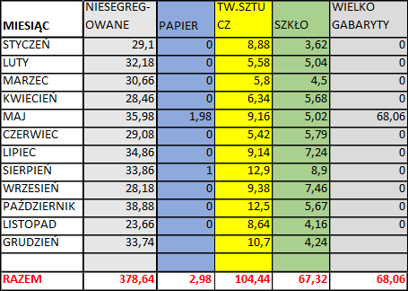 Art. 3. pkt.2, ppkt.3 ustawy o utrzymaniu czystości i porządku w gminie (t.j. Dz.U z 2020r, poz.1439) przedstawia zadania Gminy a mianowicie: gminy obejmują wszystkich właścicieli nieruchomości na terenie gminy systemem gospodarowania odpadami komunalnymi, biorąc powyższe pod uwagę, Gmina Spytkowice obejmuje wszystkich właścicieli nieruchomości zamieszkałych, którzy złożyli deklarację na odbiór i zagospodarowanie odpadów komunalnych od mieszkańców i wytwarzają odpady komunalne w swoich gospodarstwach domowych. Według danych złożone deklaracje w roku 2020 obejmują 1151gospodarstw domowych, gdzie liczba osób z deklaracji to 3889 – z 4900 zameldowanych w roku 2020. Jak widać po analizie i złożonych korektach deklaracji wielu mieszkańców naszej gminy składa deklaracje pomniejszone o rzeczywistą liczbę mieszkańców, dzieje się tak ze względu na pracę za granicą, uczęszczanie dzieci do szkół ponadpodstawowych z internatem, bądź to ze względu na studentów wyprowadzających się w związku z podjętą nauką i pracą w innej miejscowości. W przypadku tych nieruchomości, w których nastąpiła zmiana liczby osób zamieszkałych mająca wpływ na wysokość opłaty za gospodarowanie odpadami komunalnymi (tj. nowe meldunki, urodzenia, wprowadzenie się nowych osób niezameldowanych, powrót z zagranicy czy studiów itp.), należy pamiętać, aby złożyć nową deklarację w terminie do 10 dnia miesiąca następującego po miesiącu, w którym nastąpiła zmiana. Niewypełnienie tego obowiązku będzie prowadziło do wszczęcia postępowania i wydania decyzji administracyjnej naliczającej opłatę za gospodarowanie odpadami komunalnymi zgodnie z Art.6o wyżej cytowanej ustawy. Biorąc pod uwagę również rozbieżności w złożonych deklaracjach jesteśmy zmuszeni przystąpić do weryfikacji danych zawartych w deklaracjach o wysokości opłaty za gospodarowanie odpadami komunalnymi, w zakresie liczby mieszkańców zamieszkujących nieruchomości na terenie Gminy Spytkowice. Weryfikacja złożonych deklaracji o wysokości opłaty za gospodarowanie odpadami komunalnymi, przeprowadzana będzie w oparciu o dane zgromadzone w Ewidencji Ludności. W przypadku uzasadnionych wątpliwości, co do danych zawartych w deklaracji Urząd wezwie do udzielenia wyjaśnień w powyższym zakresie oraz do złożenia nowej deklaracji o wysokości opłaty za gospodarowanie odpadami komunalnymi, wykazującej stan faktyczny zgodny z rzeczywistością, dlatego już teraz apelujemy do mieszkańców gminy, aby sami zgłaszali się do Urzędu w celu złożenia rzetelnej deklaracji o wysokości opłaty za gospodarowanie odpadami. Deklaracje można złożyć w Urzędzie, wysłać pocztą lub poprzez skrzynkę E-PUAP. Pragnę nadmienić w tym miejscu, iż oświadczenie w deklaracji, które jest przez Państwa podpisywane, wymaga od państwa zweryfikowania i podania prawidłowej liczby mieszkańców, zatajenie poprawnej liczby osób zamieszkałych w danej nieruchomości, w dużej mierze przyczynia się do ciągłych wzrostów cen za odbiór odpadów. Mimo tendencji malejącej w postaci osób zamieszkałych daną nieruchomość, zauważa się ciągły wzrost wytwarzanych odpadów komunalnych w naszej miejscowości. Dlatego też bardzo prosimy o szczerość i uczciwość wobec innych mieszkańców, którzy lojalnie i należycie wypełniają obowiązek utrzymania gospodarki odpadami. To w kwestii nas wszystkich jest, aby szanować się na wzajem i być dla siebie uczciwym nawet w takich sprawach jak odpady komunalne, bo tutaj przecież chodzi o nasze wspólne dobro. Aby było bardziej przejrzyście to poniżej znajdują się dwie tabelki ukazujące ilość odpadów odebranych w roku 2019, oraz ilość odpadów odebranych w roku 2020 do października 2020r,