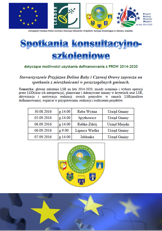 Stowarzyszenie Przyjazna Dolina Raby i Czarnej Orawy zaprasza na bezpłatne konsultacje do biura LGD (budynek Poczty- nr 45 B w Rabie Wyżnej) w każdą ŚRODĘ od 8:00 do 14:00.